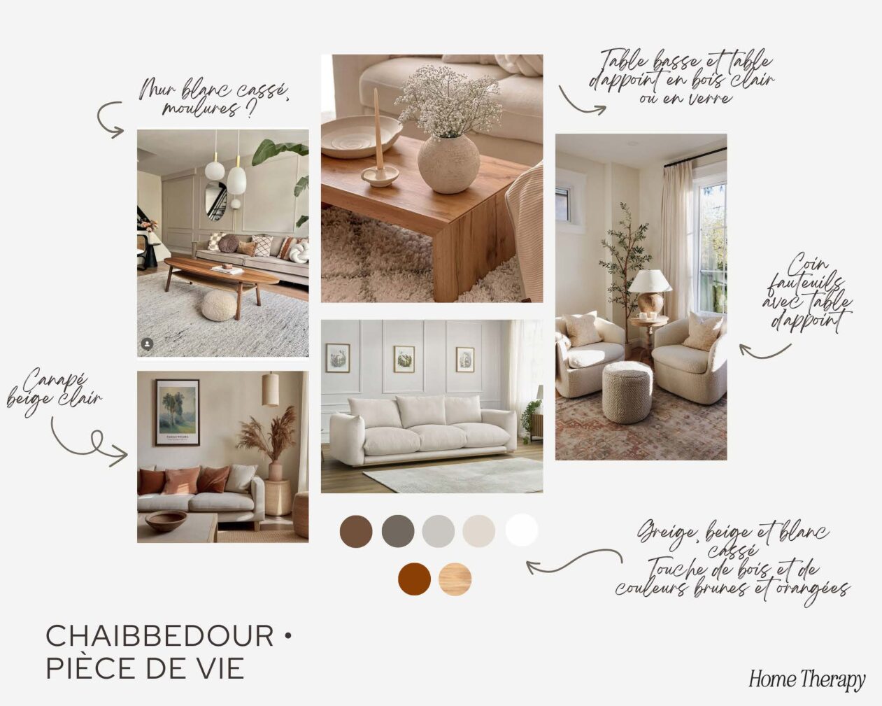 La cliente souhaitait un intérieur à la fois confortable et esthétique, avec une vision globale lui permettant d’éviter une accumulation d’achats désorganisés.