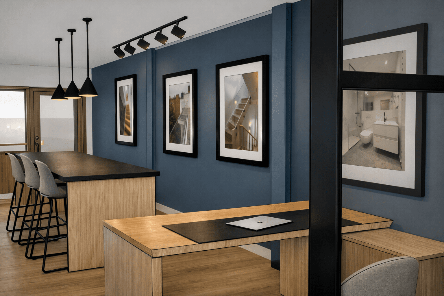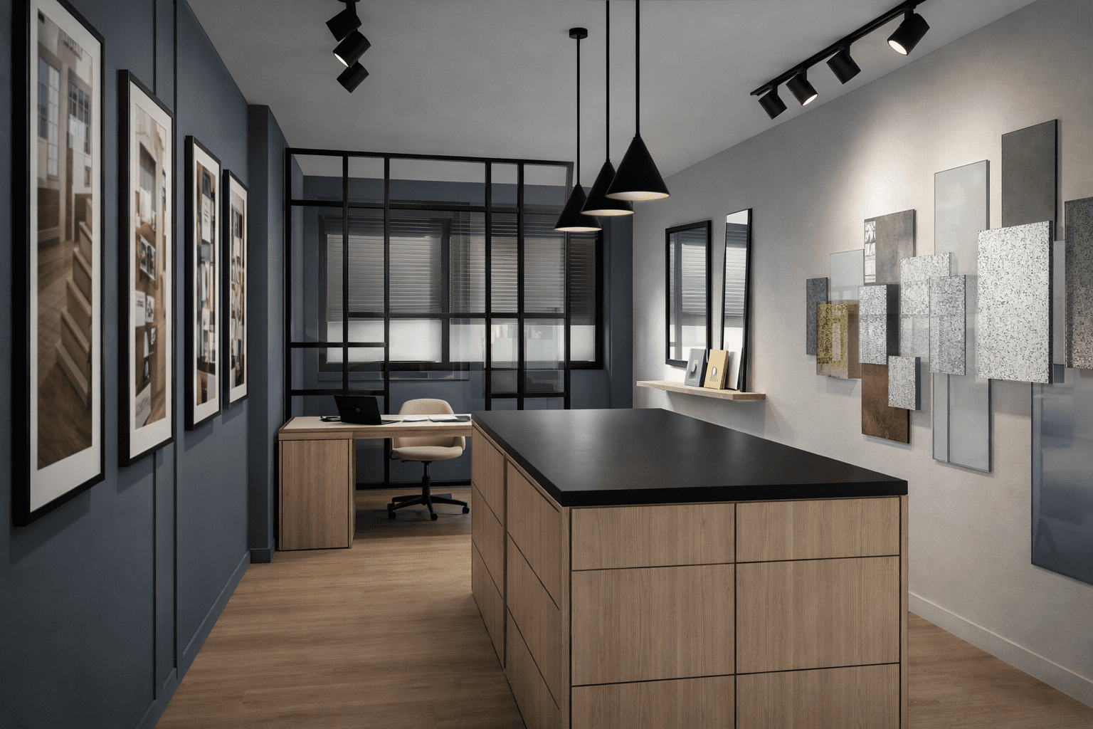 L’ensemble du projet vise à offrir un lieu à la fois professionnel, accueillant et immersif, pensé comme un véritable outil de présentation et de projection pour les clients.